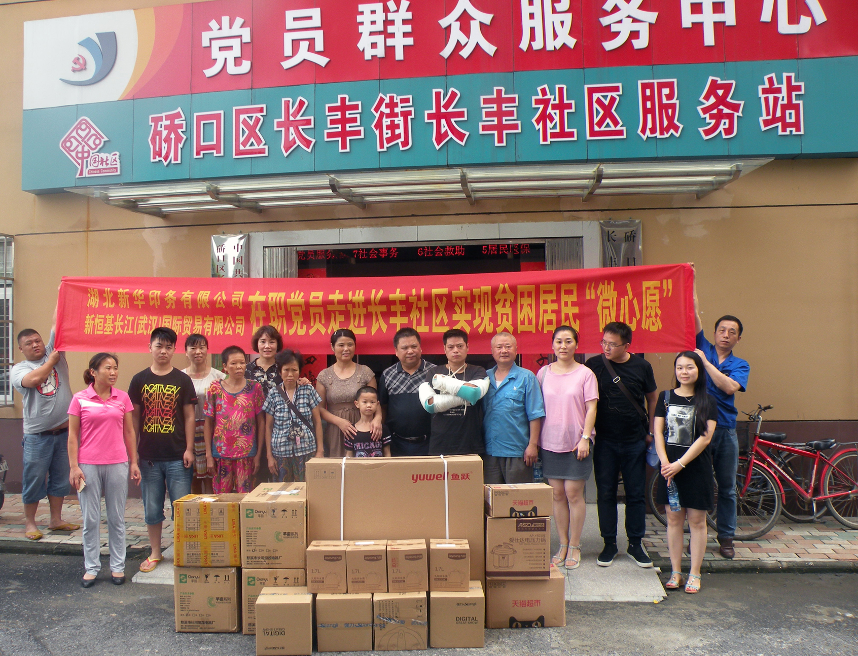 8月5日上午,新華印務(wù)在職黨員走進(jìn)社區(qū)幫助貧困居民實現(xiàn)微心愿。黨委書馮啟烈參加活動,圓了社區(qū)貧困居民的微心愿。