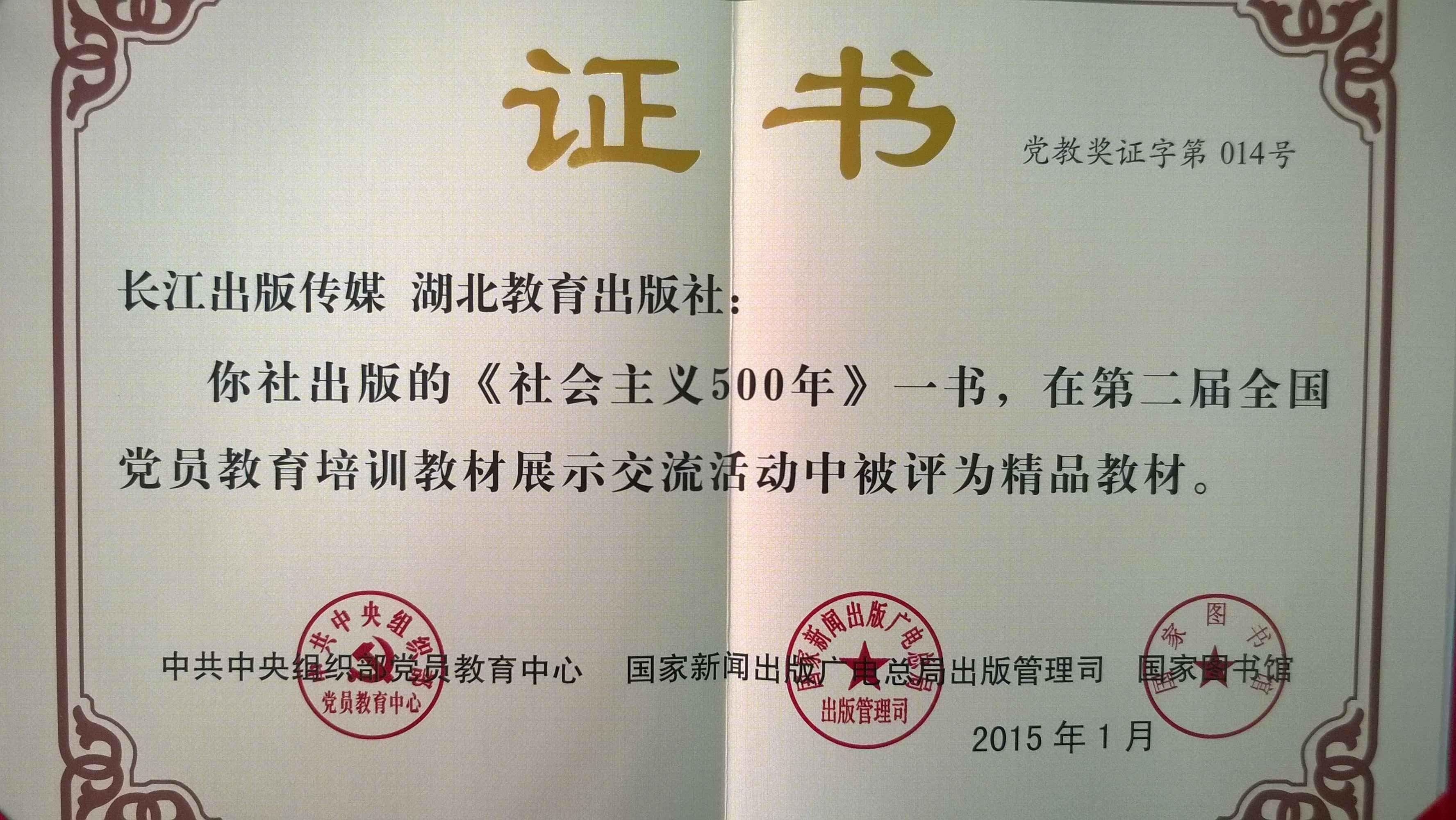 湖北教育出版社《社會主義500年》一書獲評“第二屆全國黨員教育培訓教材展示交流活動”精品教材