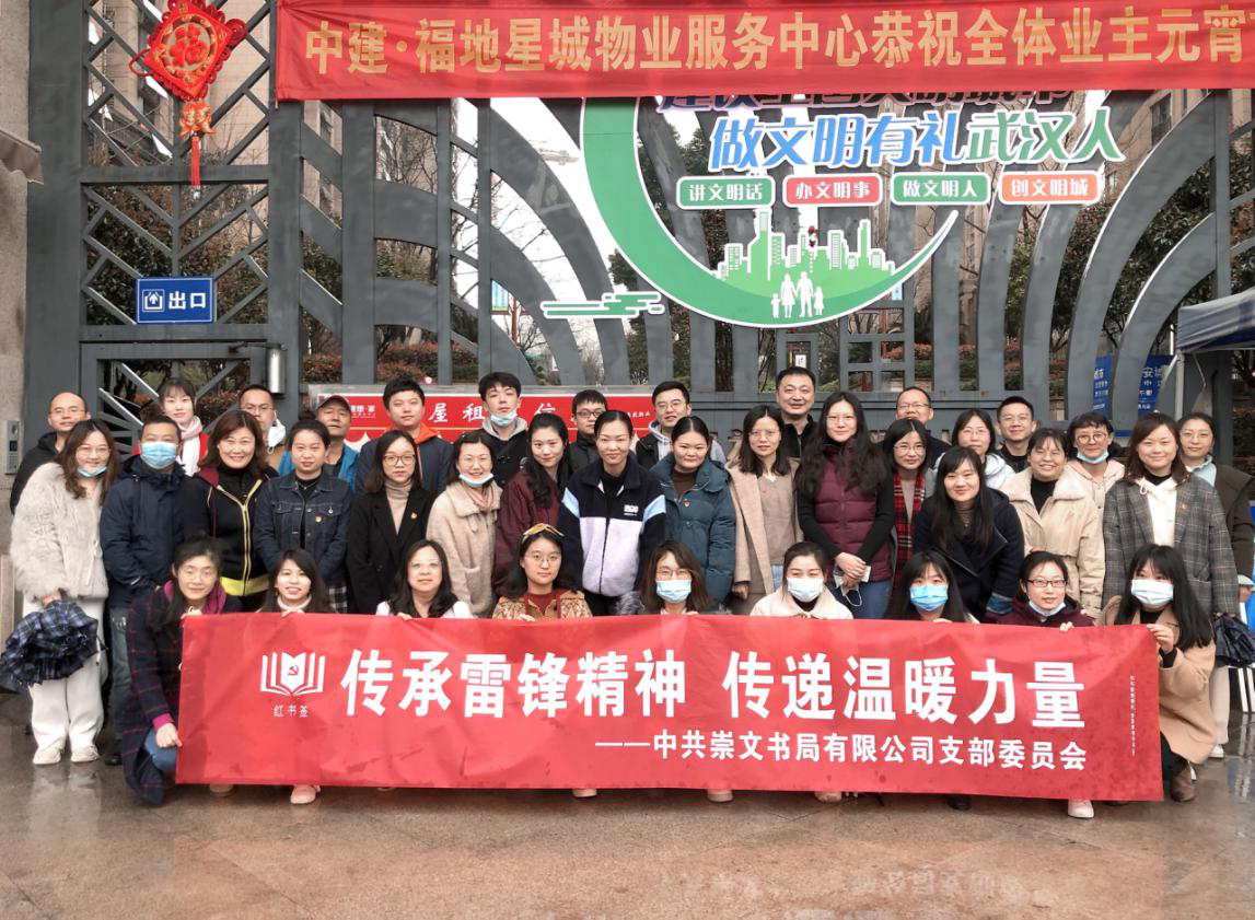 在第54個(gè)學(xué)習(xí)雷鋒精神紀(jì)念日來(lái)臨之際,中共崇文書(shū)局有限公司支部委員會(huì)組織全體黨員、入黨積極分子及青年團(tuán)員一行40人,于3月5日上午,冒雨深入中建福地星城小區(qū)20戶(hù)孤寡老人家中開(kāi)展“傳承雷鋒精神 傳遞溫暖力量”為主題的學(xué)雷鋒志愿服務(wù)活動(dòng)。