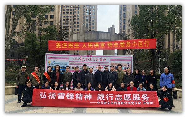 在春暖花開(kāi)、熱情洋溢的陽(yáng)春3月,為推動(dòng)“學(xué)雷鋒”活動(dòng)的深入開(kāi)展,弘揚(yáng)中華民族傳統(tǒng)美德,中共崇文書(shū)局有限公司黨支部、共青團(tuán)于3月4日組織全體黨員及共青團(tuán)員在中建福地星城小區(qū)發(fā)起“弘揚(yáng)雷鋒精神,踐行志愿服務(wù)”為主題的便民志愿服務(wù)活動(dòng)。