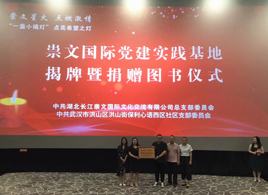 8月26日下午,崇文國(guó)際黨總支組織黨員代表參加了中國(guó)光谷創(chuàng)意基地客·藝劇場(chǎng)演唱軍旅紅色歌曲活動(dòng),舉行了“一盞小橘燈”點(diǎn)亮希望之燈的贈(zèng)書(shū)儀式。