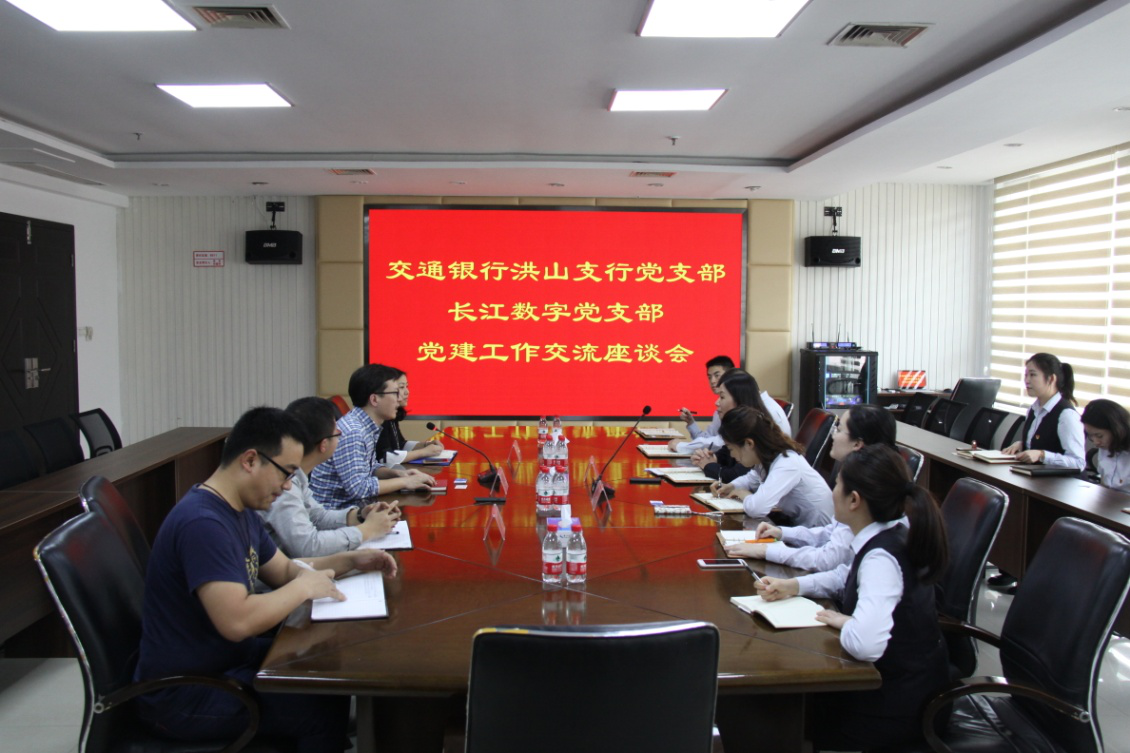 4月20日,交通銀行武漢洪山支行黨支部與長江數(shù)字黨支部舉辦黨建工作交流座談會,雙方圍繞黨建工作開展、黨建引領(lǐng)作用發(fā)揮、黨員隊(duì)伍建設(shè)進(jìn)