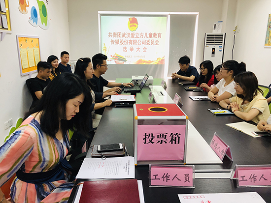 2019年6月6日,共青團(tuán)武漢愛立方兒童教育傳媒股份有限公司委員會(huì)正式成立,并于召開第一屆團(tuán)委委員選舉大會(huì),選舉產(chǎn)生新一屆團(tuán)委委員。