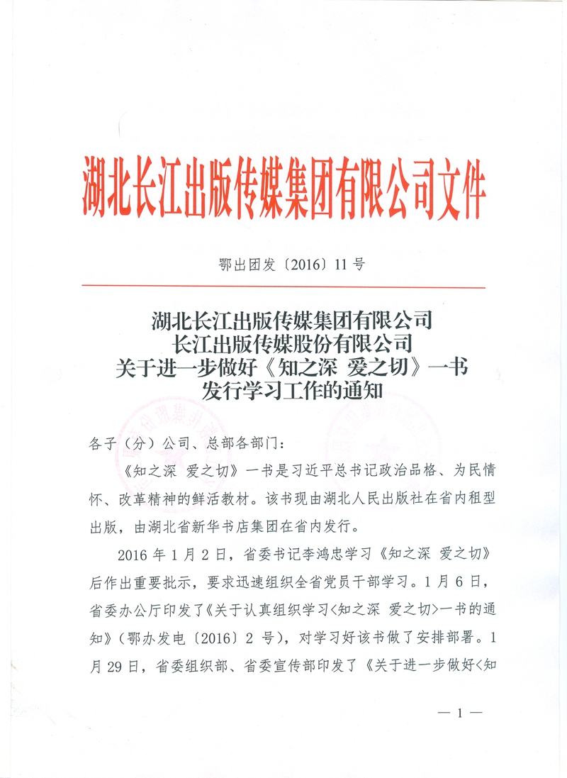 《知之深 愛之切》一書是習近平總書記政治品格、為民情懷、改革精神的鮮活教材。該書現由湖北人民出版社在省內租型出版,由湖北省新華書店集團在省內發(fā)行。 公司各單位各部門要按照省委書記批示精神,按省委辦公廳、省委組織部、省委宣傳部文件要求,認真做好該書的租型印制和發(fā)行工作。