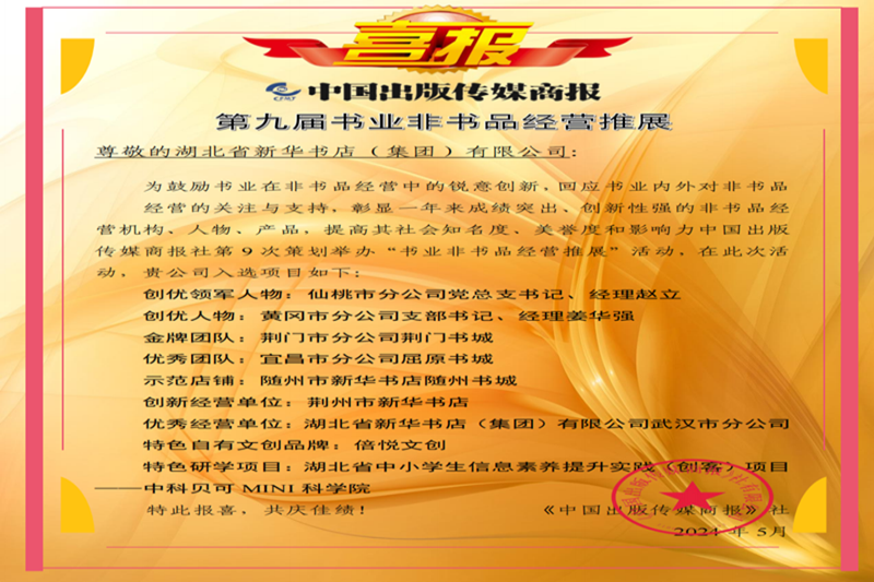 喜報 | 湖北新華榮獲第九屆書業(yè)非書品經營推展九個獎項