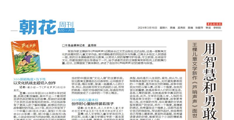 半島都市報∣用智慧和勇敢守護母語守衛(wèi)家園——王棵兒童文學新作《蘆哨聲聲》面世