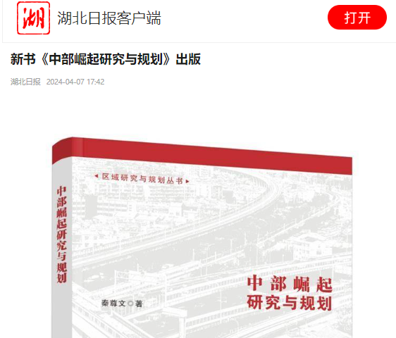 湖北日報∣新書《中部崛起研究與規(guī)劃》出版