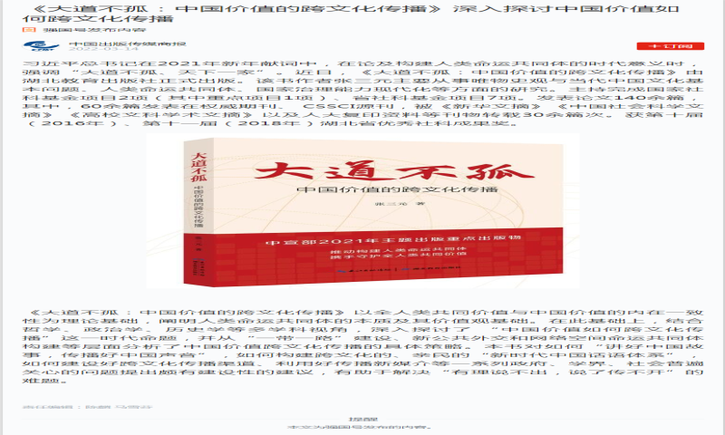 湖北日報(bào)客戶端 | 《大道不孤:中國價值的跨文化傳播》出版