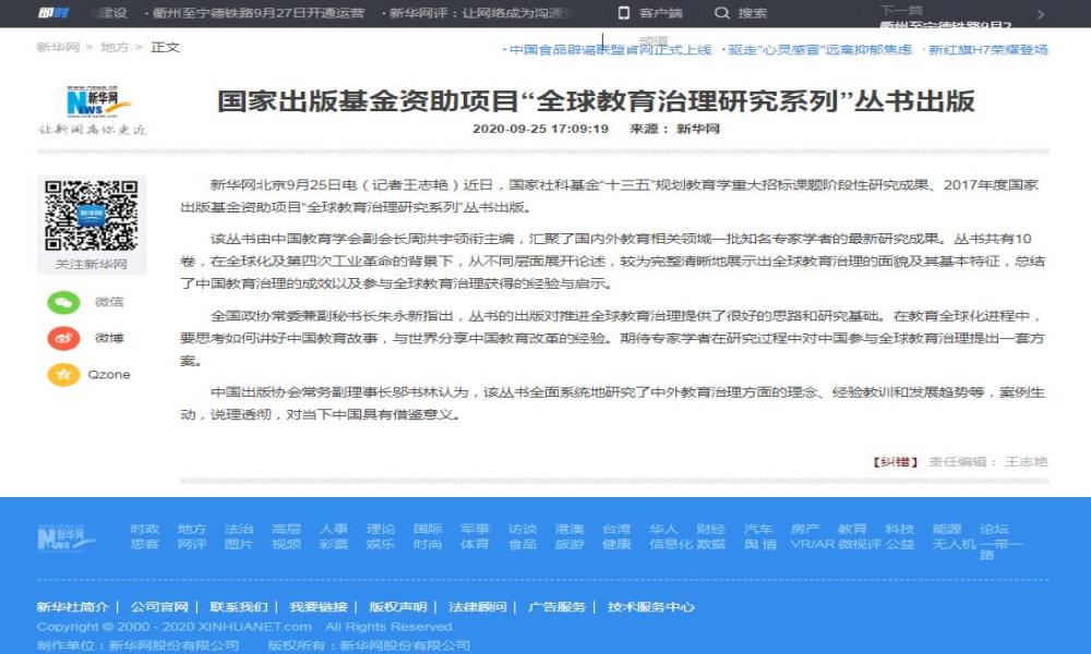 “全球教育治理研究系列”叢書:總結(jié)教育治理的全球經(jīng)驗(yàn) 探索教育強(qiáng)國的中國路徑