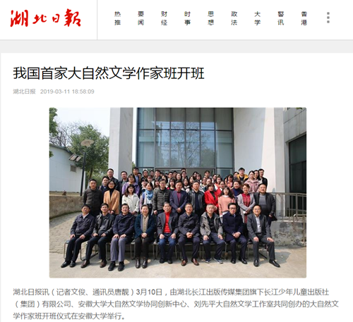 近日,《湖北日報》《出版商務周報》《中國新聞出版廣電報》《文藝報》等國家級和省級媒體熱議、報道、宣傳長江少年兒童出版社攜手安徽大學創(chuàng)辦我國第一家大自然文學作家班,在社會各界引起強烈反響。