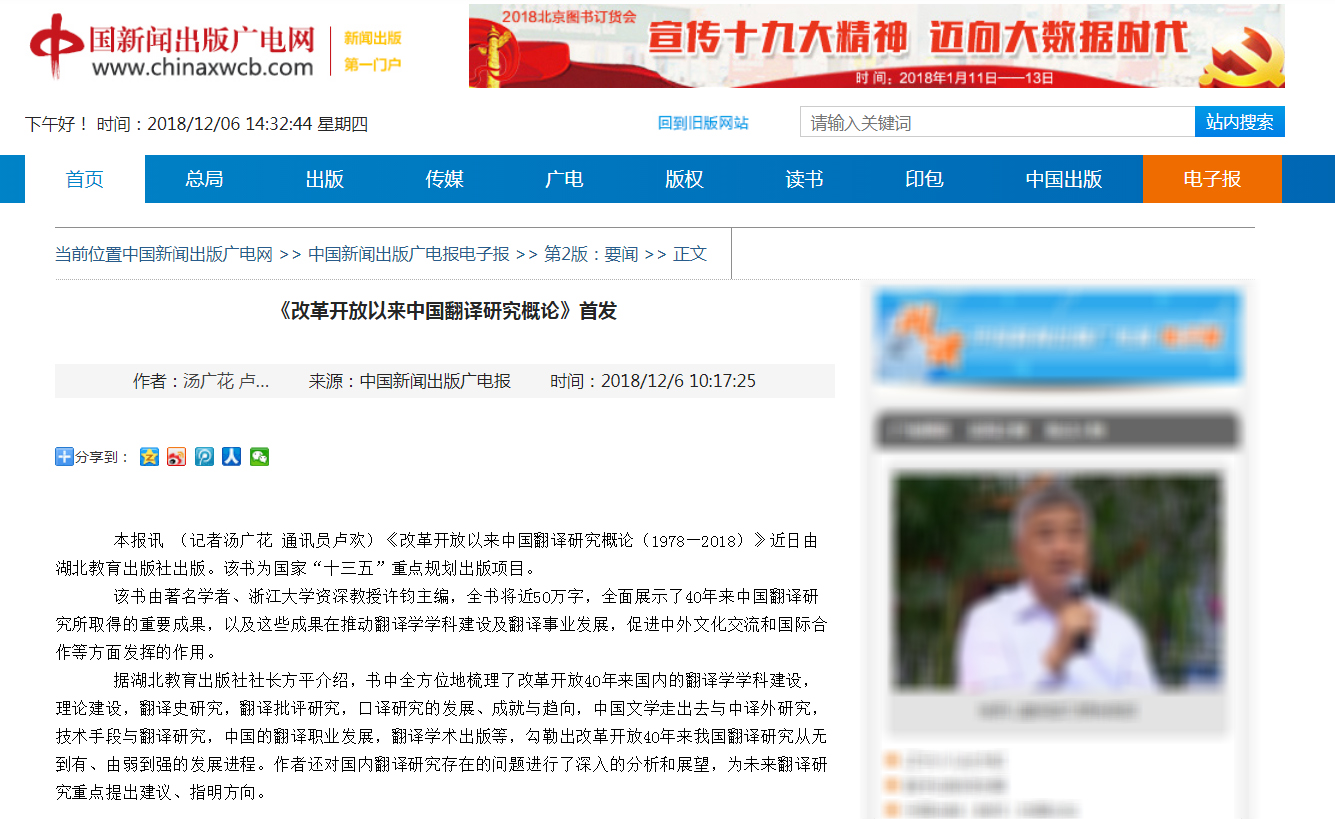中國新聞出版廣電報|《改革開放以來中國翻譯研究概論》首發(fā)