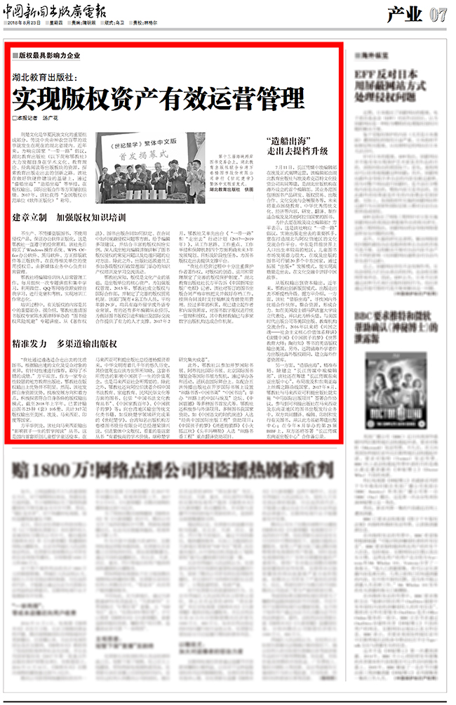 中國新聞出版廣電報|湖北教育社:實現(xiàn)版權(quán)資產(chǎn)有效運營