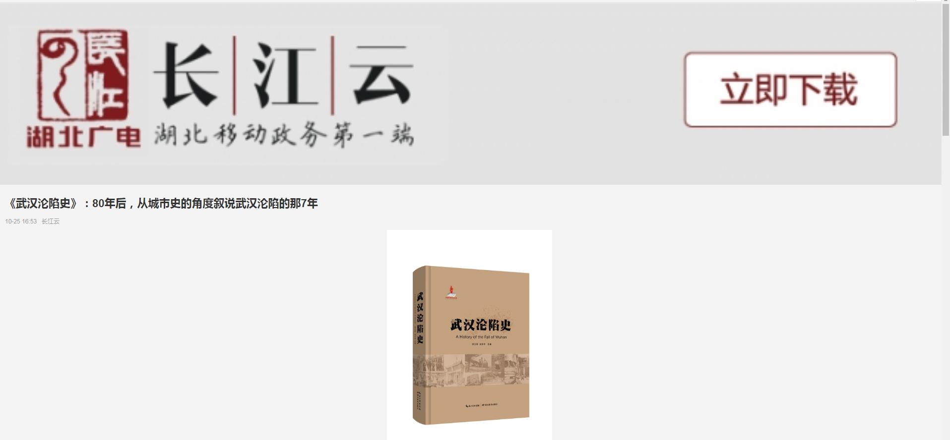 長江云報道2018年10月25日,是武漢在抗日戰(zhàn)爭中淪陷80周年的紀念日1938年日本侵略者攻占武漢,武漢進入長達7年的淪陷時期。在海內(nèi)外學(xué)術(shù)