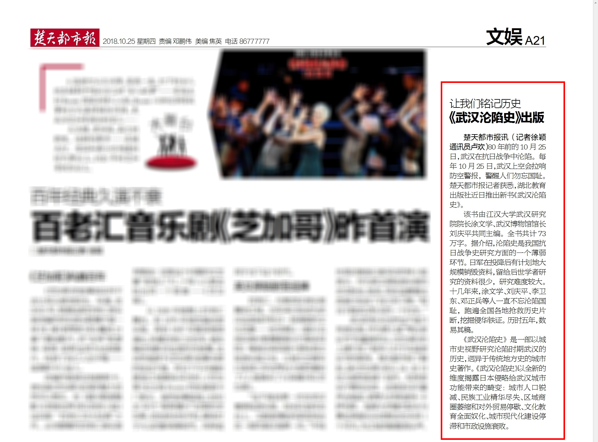 楚天都市報|讓我們銘記歷史《武漢淪陷史》出版