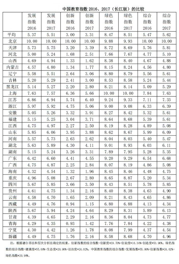 在3月3日上午舉辦的第十一屆北京長江教育論壇上,長江教育研究院正式發(fā)布《中國教育指數(shù)2017》。該研究報(bào)告從規(guī)模、投入、質(zhì)量、信息、公平、貢獻(xiàn)、創(chuàng)新、創(chuàng)業(yè)、創(chuàng)造、健康、生態(tài)、法治等12個(gè)維度反映了2017年全國及各省(自治區(qū)、直轄市)教育治理能力、改進(jìn)效果以及發(fā)展水平。