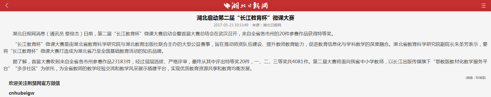 荊楚網(wǎng):湖北啟動(dòng)第二屆“長(zhǎng)江教育杯”微課大賽