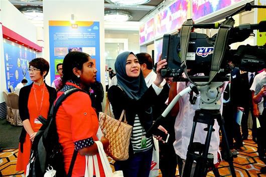 湖北日?qǐng)?bào)訊 圖為:湖北傳媒周活動(dòng),吸引了馬來(lái)西亞傳媒出版界高度關(guān)注。盛夏大馬,熱情似火。30日上午,吉隆坡中谷展覽中心,馬來(lái)西亞各大