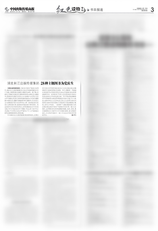 中國(guó)出版?zhèn)髅缴虉?bào):長(zhǎng)江傳媒28種主題圖書(shū)為黨慶生