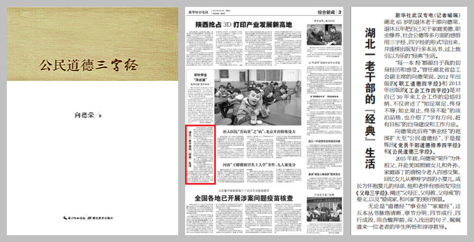 新華每日電訊力薦湖北教育出版社《公民道德三字經(jīng)》,贊揚(yáng)作者“經(jīng)典”生活
