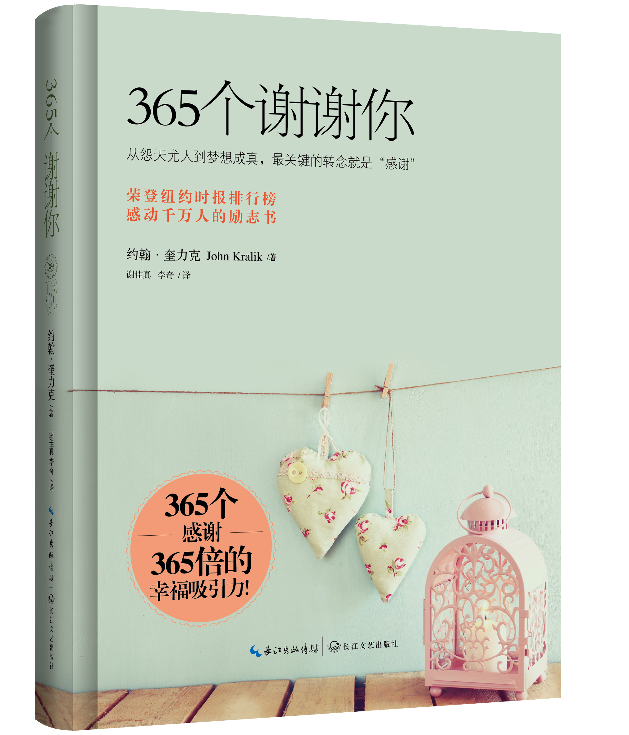 365個謝謝你簡介從怨天尤人到心想事成,最關鍵的轉念就是“感謝”。影響百萬讀者的正能量讀物,紐約時報暢銷榜書籍,讓你美夢成真的秘訣,全面公開出版單位:長江文藝出版社