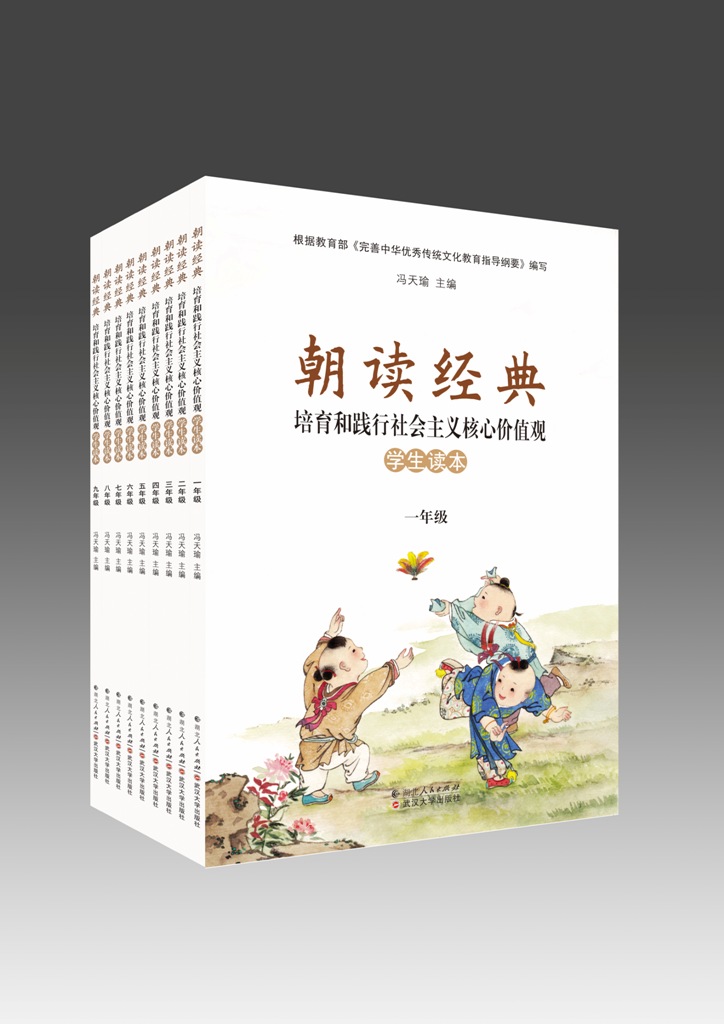朝讀經典?培育和踐行社會主義核心價值觀學生讀本簡介本叢書是依據教育部《完善中華優(yōu)秀傳統文化教育指導綱要》編寫的,由著名歷史學家馮天瑜主編,涵蓋小學至高中共10冊。讀本將中華優(yōu)秀傳統文出版單位:湖北人民出版社
