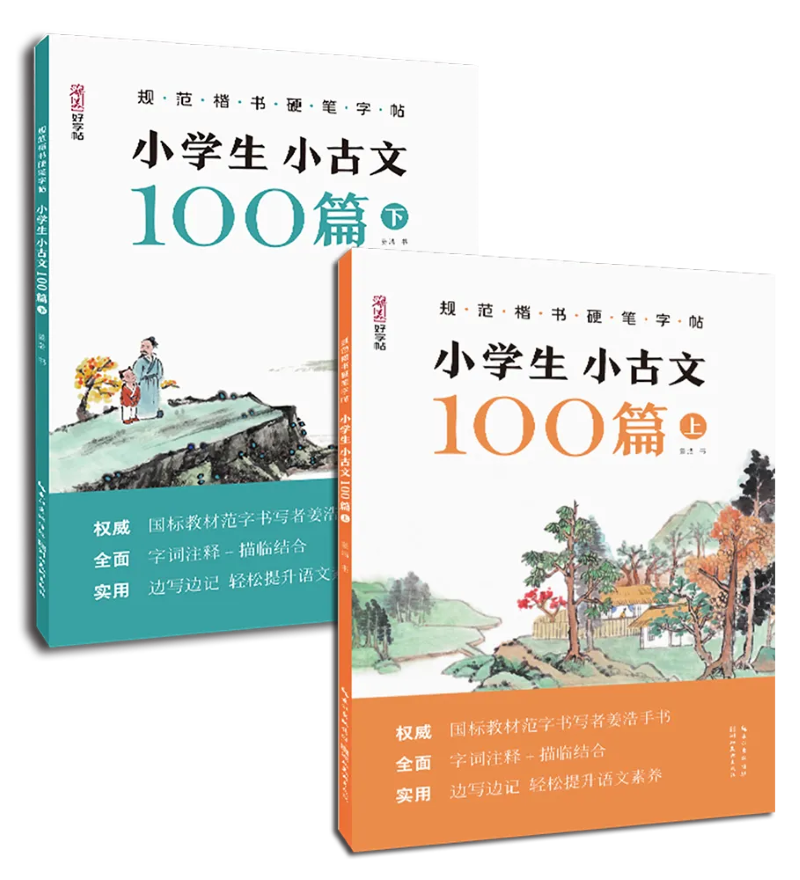 規(guī)范楷書硬筆字帖·小學(xué)生小古文100篇(上/下)簡介本套書針對(duì)小學(xué)階段語文課程標(biāo)準(zhǔn)要求,精心挑選文言文中篇幅短小、內(nèi)容淺近的部分供小學(xué)生閱讀學(xué)習(xí)背誦。所選主題涉及田園風(fēng)景、天氣變化、動(dòng)物植物習(xí)性、成語寓言故事等多個(gè)板塊,在拓寬小學(xué)生閱讀視野的同時(shí)通過閱讀、書寫培養(yǎng)語感,讓孩子樂學(xué)、好學(xué),提升閱讀和書寫能力。(肖志婭)出版單位:湖北美術(shù)出版社
