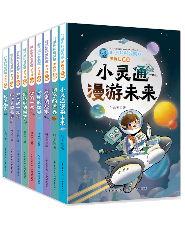 葉永烈科普典藏叢書(shū)簡(jiǎn)介本叢書(shū)共9本,分別是《小靈通漫游未來(lái)》《生活中的科學(xué)》《科學(xué)王國(guó)漫步》《碳的一家》《金屬的世界》《原子的世界》《化學(xué)趣史》《元素的故事》《空氣的一家》,精選了葉永烈既經(jīng)典又暢銷的科普作品,其內(nèi)容包含科幻小說(shuō)、科學(xué)小品等,集納了其60多年來(lái)科普創(chuàng)作的精華。叢書(shū)為青少年讀者展現(xiàn)了神奇的科學(xué)世界以及科學(xué)對(duì)人類生活的影響,希望藉此為青少年的科學(xué)閱讀提供一份豐盛而有益的精神食糧,激發(fā)他們對(duì)身邊萬(wàn)物的求知欲,培養(yǎng)他們的深入探索精神。出版單位: