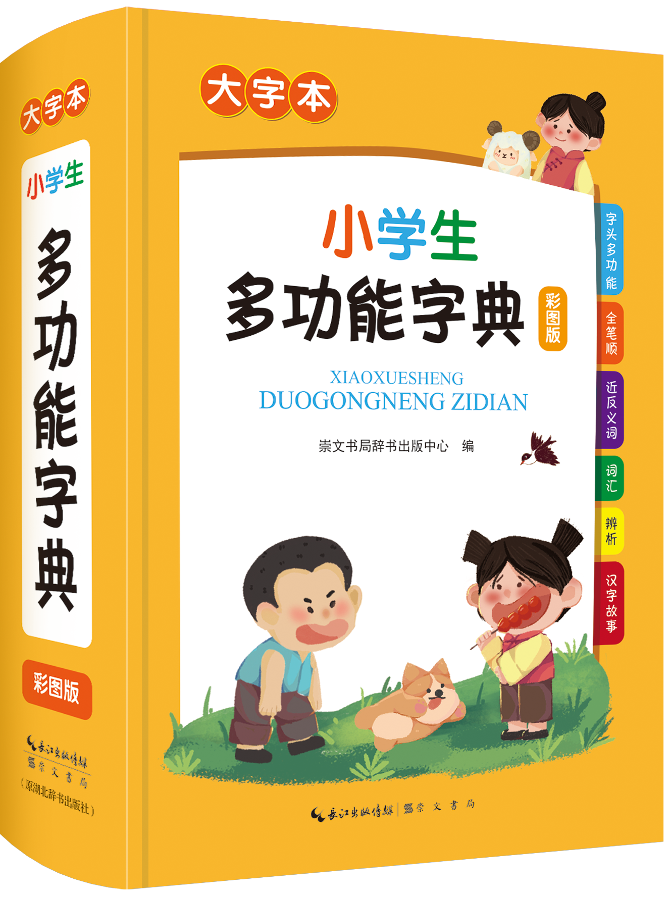小學(xué)生多功能系列工具書(彩版大字本)簡介本套書是針對(duì)小學(xué)生讀者實(shí)際使用需求和近視防控需要研發(fā)的彩圖版工具書系列。采用大開本,大字號(hào),全彩印刷,護(hù)眼醒目。全套囊括字典、成語詞典、同近反義詞詞典、筆順規(guī)范字典和英漢詞典五大學(xué)生常備品種。各本收詞適量,內(nèi)容豐富,功能實(shí)用,插圖精美,查找便捷,是小學(xué)生課內(nèi)外學(xué)知識(shí)、做作業(yè)的好幫手。出版單位:崇文書局