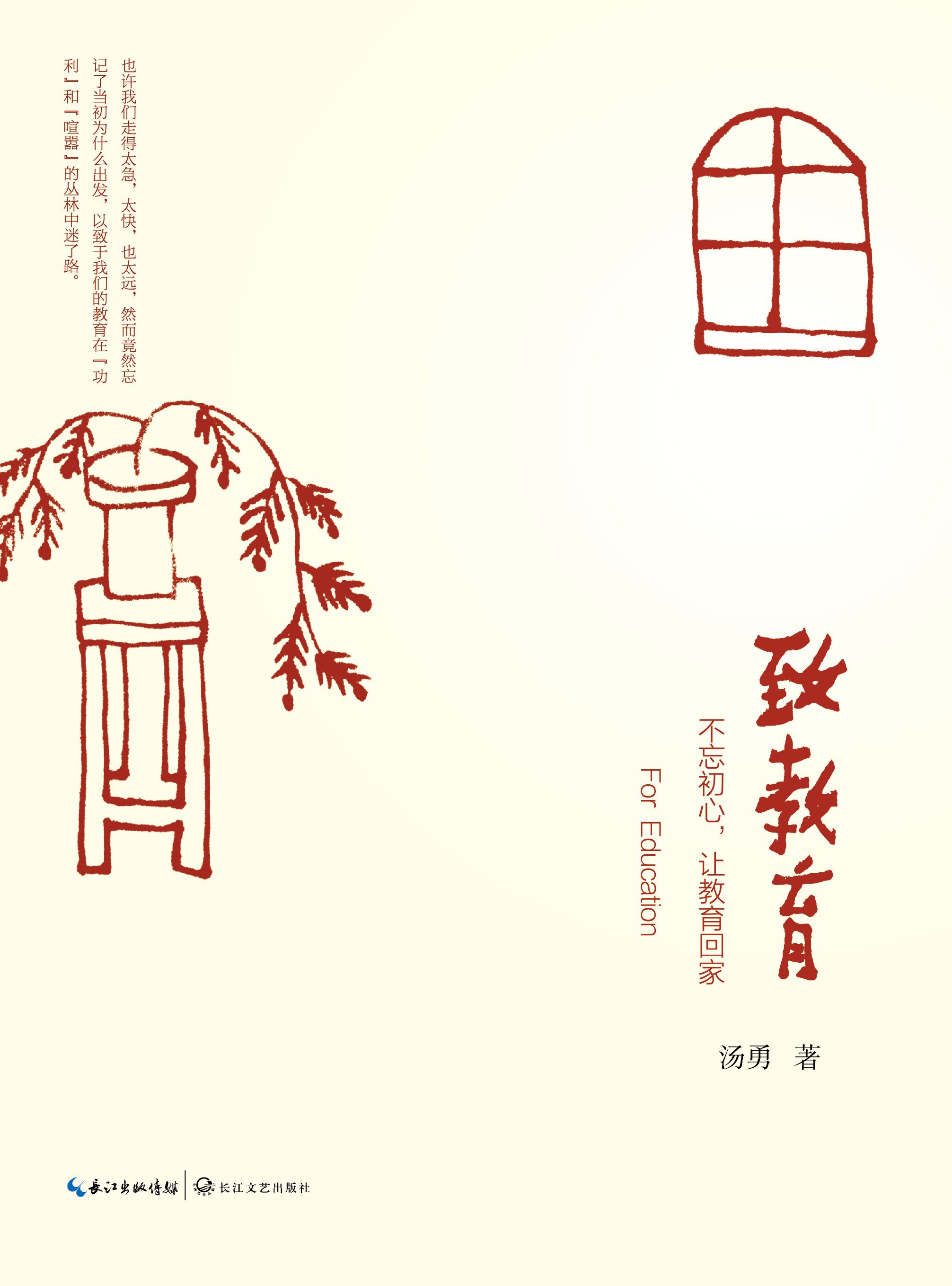 致教育簡介湯勇老師近30年教育理解與哲思。 對(duì)于教育,也許我們走得太快,太急,竟忘記了當(dāng)初為什么出發(fā),以至于我們的教育在“功利”和“喧囂”的叢林中迷了路。出版單位:長江文藝出版社