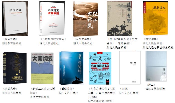 湖北教育出版社《興國之魂——社會(huì)主義核心價(jià)值體系釋講》入選“五個(gè)一工程”特別獎(jiǎng)作品名單;湖北人民出版社《八項(xiàng)規(guī)定改變中國》《漢水大移民》《抗日戰(zhàn)爭轉(zhuǎn)折點(diǎn)上的大會(huì)戰(zhàn)——隨棗會(huì)戰(zhàn)》《湖北讀本》,長江文藝出版社《漢武大帝》《鋼鐵三部曲之大國煙云》《重返狼群》,長江少年兒童出版社《你在為誰讀書3(第二季):自控力成就杰出少年》,湖北人民出版社、湖北九通電子音像出版社合編《湖北讀本》入選“五個(gè)一工程”獲獎(jiǎng)名單。
