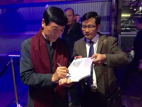 國際安徒生獎(jiǎng)?lì)C獎(jiǎng)晚宴現(xiàn)場(chǎng),曹文軒老師在《曹文軒畫本-草房子》扉頁為長(zhǎng)江少年兒童出版社題詞。