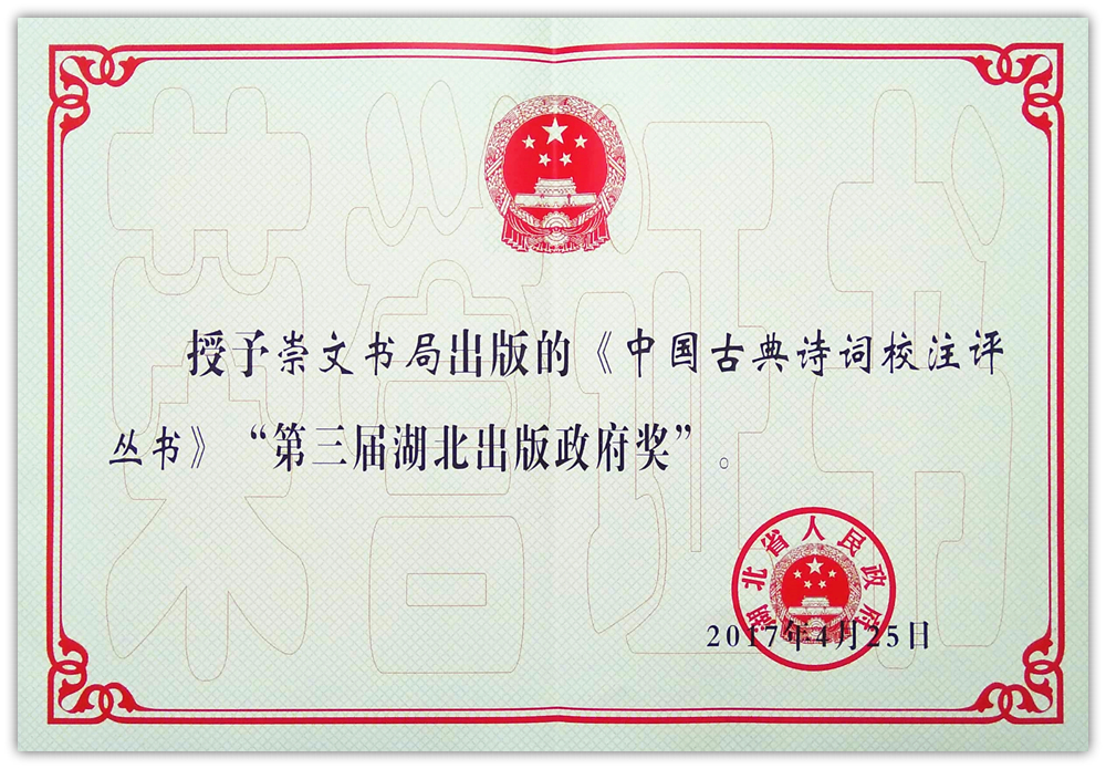 崇文書局榮獲第三屆省出版政府獎(jiǎng)圖書獎(jiǎng)編輯獎(jiǎng)