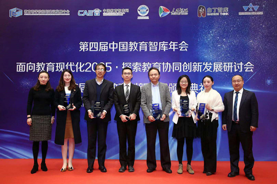 2019年11月16—17日,第四屆中國教育智庫年會(huì)暨面向教育現(xiàn)代化2035·探索教育協(xié)同創(chuàng)新發(fā)展研討會(huì)在北京召開。年會(huì)上舉行了首屆未來教育創(chuàng)新成果頒獎(jiǎng)典禮,長江教育研究院榮獲“2019年度最具影響力智庫獎(jiǎng)”。