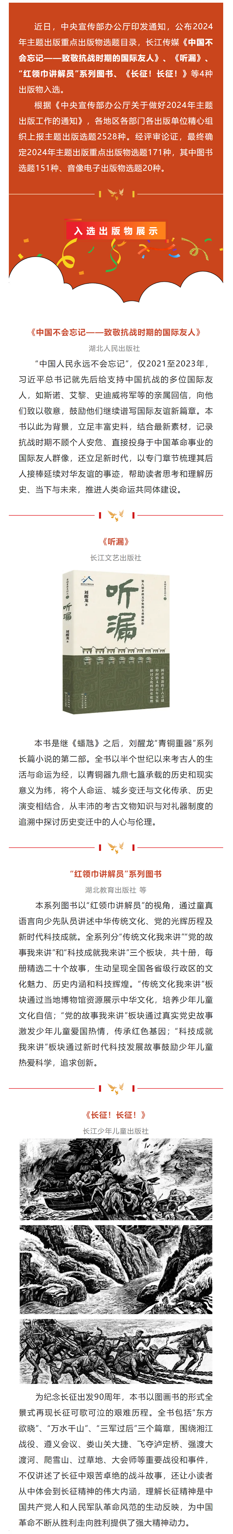 長(zhǎng)江傳媒4種選題入選中宣部2024年主題出版重點(diǎn)出版物選題