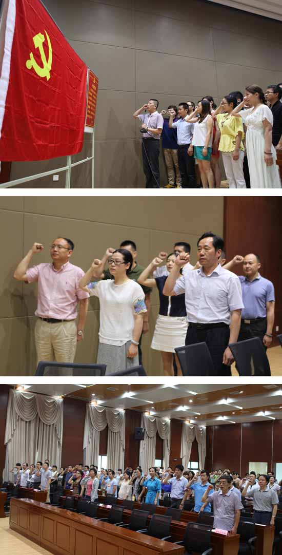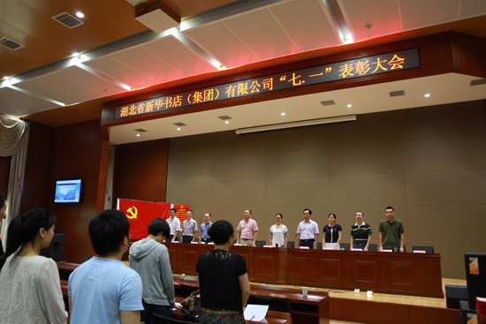 根據(jù)會議安排,書店集團(tuán)公司黨委委員張軍帶領(lǐng)集團(tuán)公司總部15名新黨員在主席臺上面向黨旗進(jìn)行了莊嚴(yán)宣誓,其余全體黨員原地起立一起重溫了入黨誓詞。