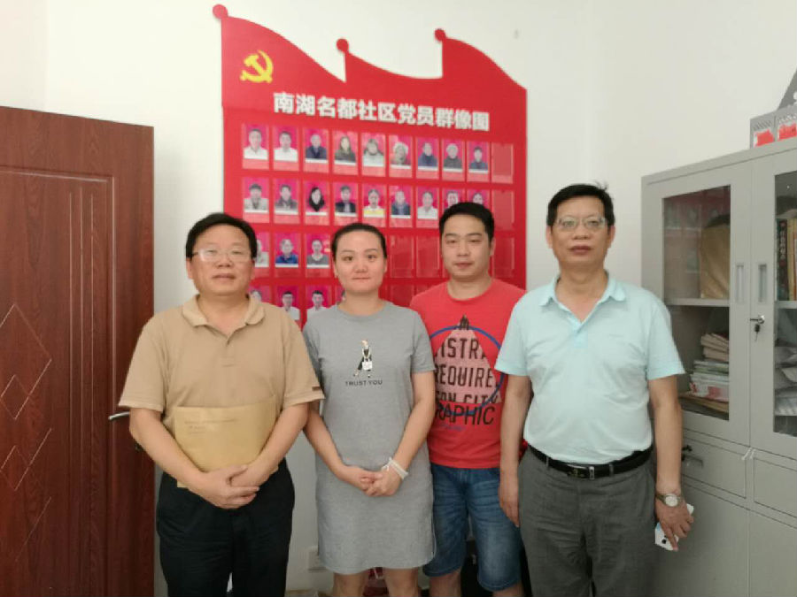 7月28日,我社黨委委員陳令軍和第二支部書記李鵬與南湖名都社區(qū)書記、主任范寅(女),專職副書記張?zhí)煜椋ㄓ叶狱h員進社區(qū)活動