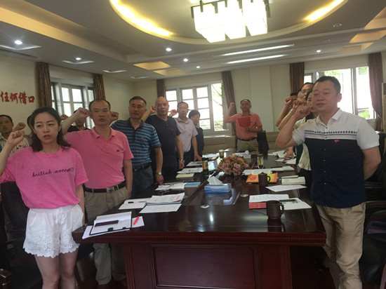 會議開始,全體黨員唱《中華人民共和國國歌》,重溫入黨《誓詞》,并集中學(xué)習(xí)了《黨章》。