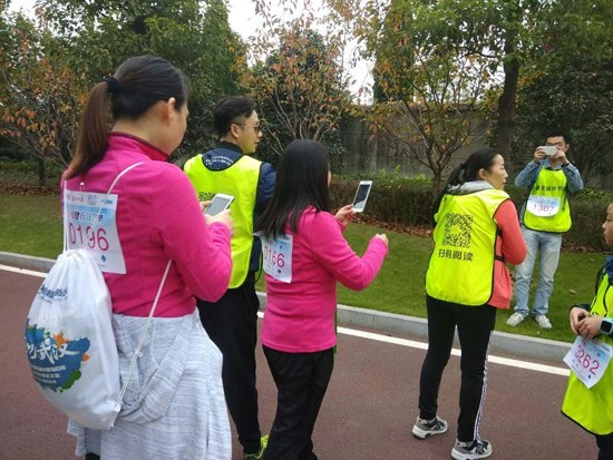 江城驟降的氣溫也沒能阻擋“新華人”的熱情,一大早,大家就身著標有湖北新華書店集團文字及電商二維碼logo的熒光綠背心來到集合場地,對活動充滿了期待。