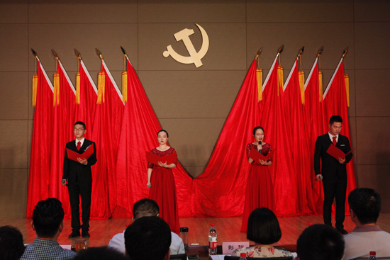 會(huì)議舉行新黨員入黨宣誓儀式,由集團(tuán)黨委委員、副總經(jīng)理熊靜領(lǐng)誓;全體黨員起立,重溫 入黨誓詞;新黨員代表上臺(tái)發(fā)言。