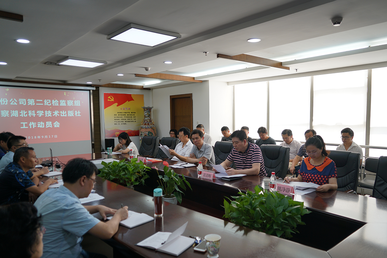 9月17日上午,按照股份公司黨委、紀委的統(tǒng)一部署,股份公司第二紀檢監(jiān)察組進駐湖北科學技術出版社,組織召開巡察工作動員會,對科技社正式開展為期兩周的巡察工作。第二紀檢監(jiān)察組組長雷清輝及紀檢監(jiān)察組成員竇鴻潭、熊凈靜出席動員會,科技社領導及中層干部參加了會議。動員會由科技社黨總支書記、社長王力軍主持,巡察組組長雷清輝就本次巡察工作作了動員報告。