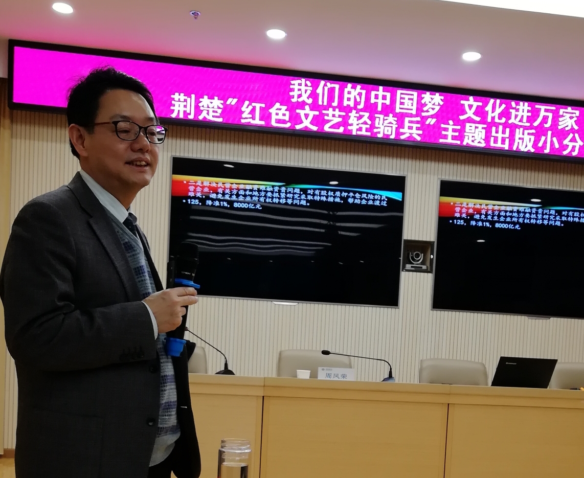 1月29日,由湖北省委宣傳部主辦,湖北省新聞出版局、長江出版?zhèn)髅焦煞萦邢薰?、湖北人民出版社承辦,黃岡市文廣新局、黃岡日報(bào)社協(xié)辦的“我們的中國夢 文化進(jìn)萬家”荊楚“紅色文藝輕騎兵”主題出版小分隊(duì)黃岡行活動(dòng)隆重舉行。湖北省新聞出版局二級巡視員、圖書處處長周鳳榮,長江出版?zhèn)髅焦煞萦邢薰揪帉徫瘑T會主任徐德歡,湖北人民出版社總編輯姚梅,以及黃岡市有關(guān)部門和單位的領(lǐng)導(dǎo)干部百余人參與了本次活動(dòng)。