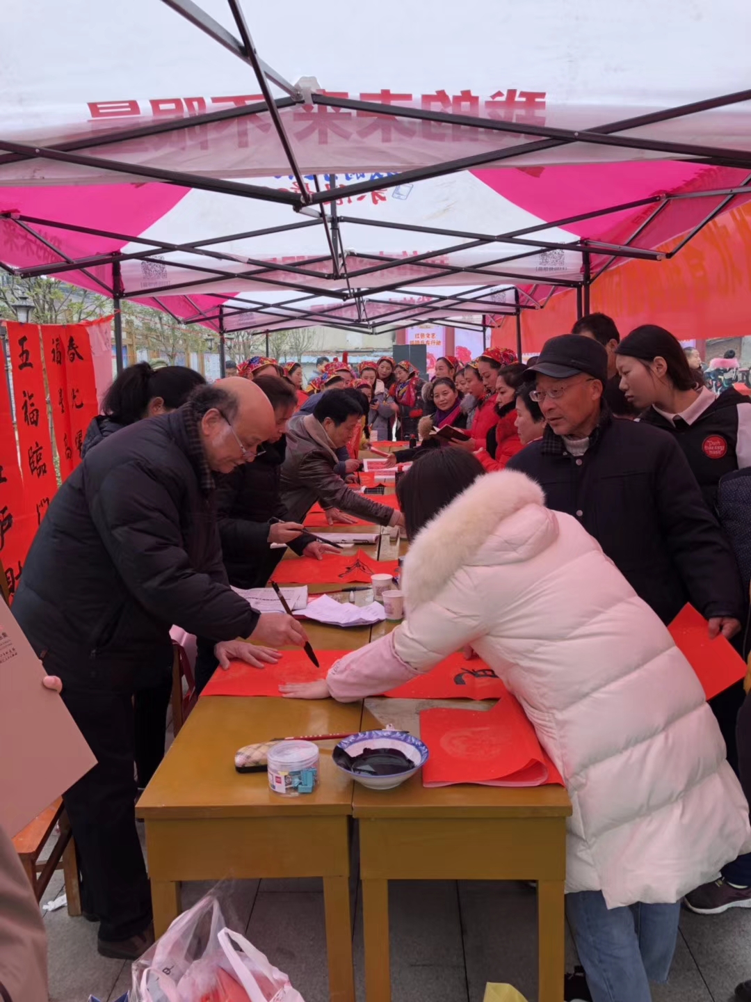 活動(dòng)過程中,荊楚“紅色文藝輕騎兵”小分隊(duì)向讀者代表贈送了一批優(yōu)秀主題出版物,同時(shí)還邀請了書法家走進(jìn)龍王山社區(qū)揮毫潑墨,為廣大居民朋友題寫春聯(lián)、送福字,以弘揚(yáng)傳統(tǒng)習(xí)俗的方式為他們送去新春祝福。