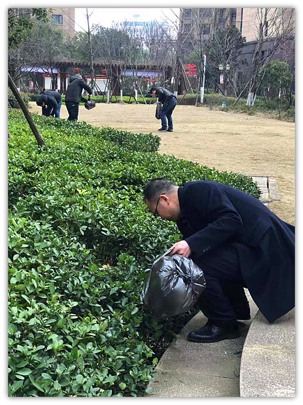 支部書記、總經(jīng)理韓敏帶領(lǐng)部分志愿者,手持清潔工具,分散行動,把整個小區(qū)綠植、草坪、轉(zhuǎn)角等易遺漏、不易打掃的區(qū)域細心地清理了一遍。