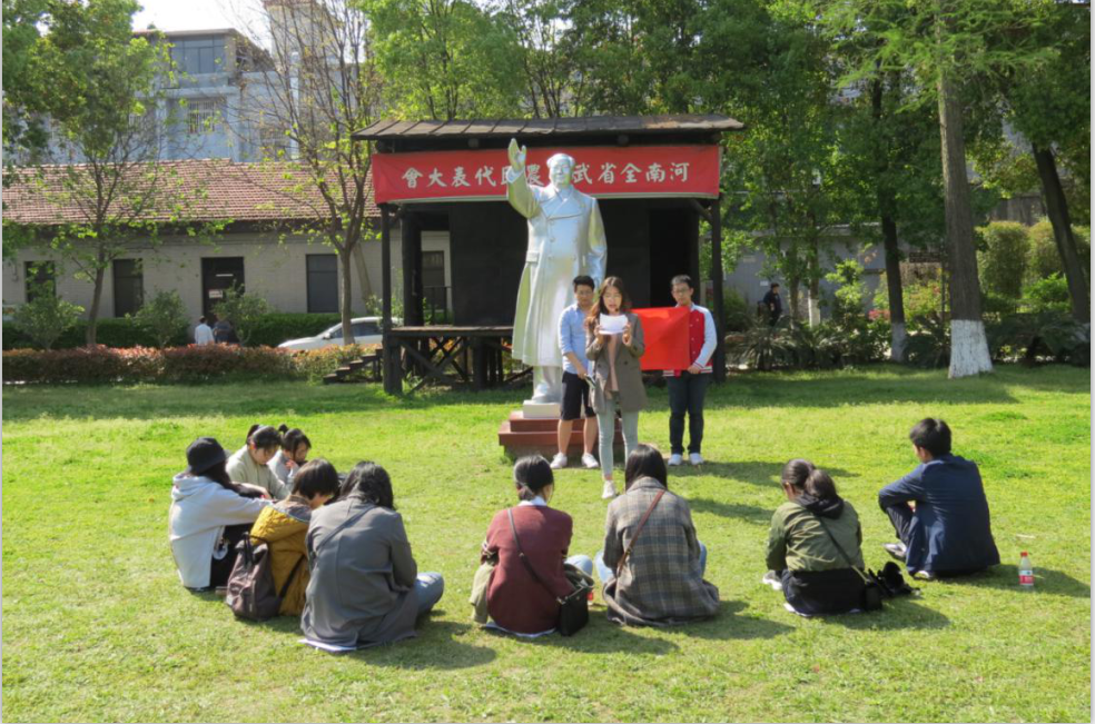 參觀瞻仰完革命遺址,團支部宣傳委員張瑩同志以“紀念五四運動100周年”為主題,為團員們現(xiàn)場講授主題微團課。張瑩同志的微團課,回顧了五四運動的歷史背景、歷史意義及在五四運動中的著名人物與貢獻。隨后,團支部書記陳希璇同志圍繞在新時代繼承和弘揚五四精神、爭做擔當民族復興大任的時代新人等內容,進行了國旗下的演講。