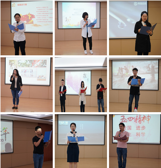 繼表彰后,紀(jì)念五四100周年朗誦會在生產(chǎn)部周宇力的朗誦《青春中國》中拉開序幕。新達(dá)泰蔡莎朗誦的《青春》、高速鄭亞林朗誦的《五四銘詩》、制版黃煒彬、張雪媛帶來的《祖國進(jìn)行曲》《平凡的世界》、平裝張帝的《五四精神》、科室史文靜的《相信未來》科室集體帶來的《五四暢想》,他們通過嫻熟的朗誦技巧,飽含情感的音樂伴奏,實現(xiàn)了詩文與情景的交融。朗誦過程中,朗誦人時而熱情迸發(fā)、青春飛揚,時而委婉細(xì)膩、如歌如泣,自然的情感流露把現(xiàn)場聽眾也帶回到那個救亡圖存、振興中華的激情歲月里。