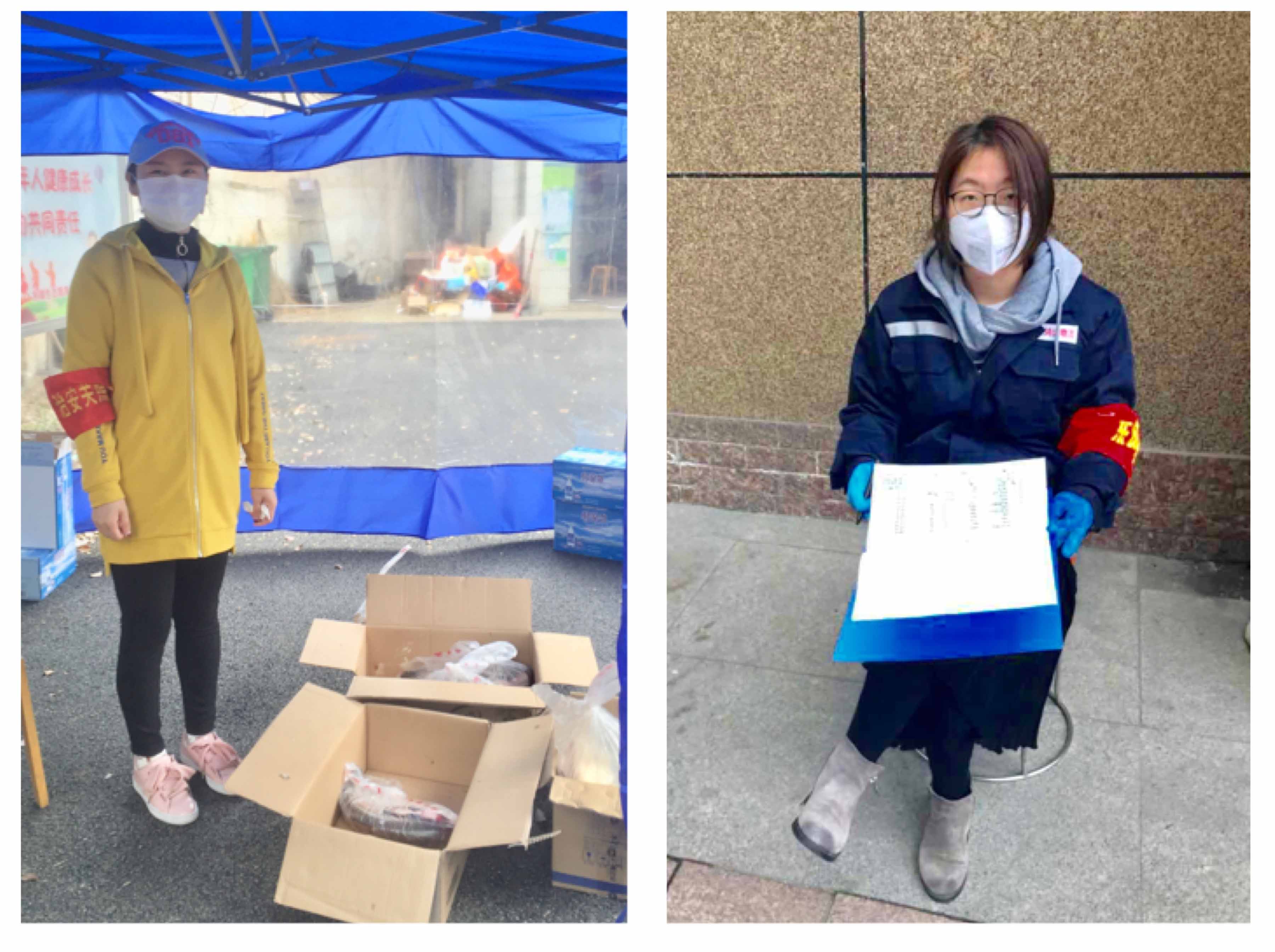 (黨員錢夢潔、付敏在各自社區(qū)值班)