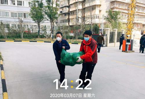 (入黨積極分子韓燕、員工魏志軍向廉租房小區(qū)捐贈物資)