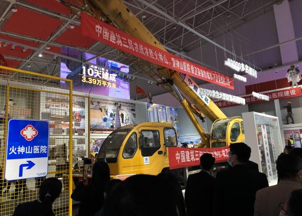 在火神山、雷神山建筑工地展覽區(qū),實(shí)景還原了反光背心、安全帽、對講機(jī)等,通過援建物品大家感受到了中國速度以及中國力量。