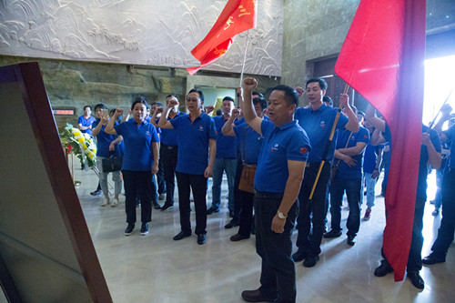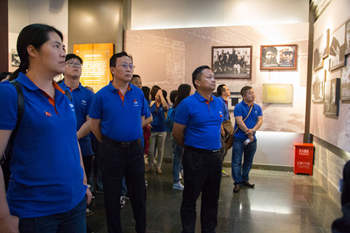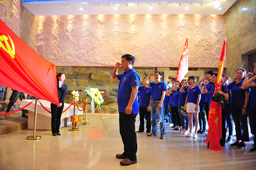在中原突圍紀念館,報刊集團黨委代表全體員工向革命先輩敬獻了花籃,并帶領全體黨員向革命烈士三鞠躬,表達對先輩的無限崇敬和哀思。全體黨員在黨旗下重溫了入黨誓詞,“為共產主義奮斗終身”的誓言整齊、響亮,再次燃起了黨員們心中拼搏的激情。在原始物證和影像資料中,大家感受著中原軍區(qū)革命前輩克服萬難、勇往直前、不怕犧牲的精神,內心受到深深的震撼,也讓大家對中原突圍精神——愛國主義精神、顧全大局精神、團結協作精神、艱苦奮斗精神、科學創(chuàng)造精神有了更深刻的理解。