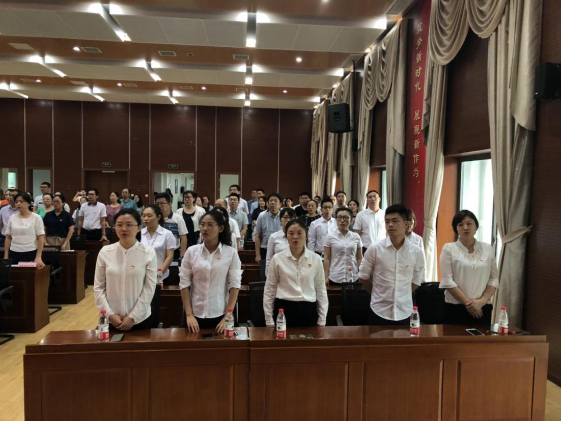 會議舉行新黨員入黨宣誓儀式,由時軍領(lǐng)誓;全體黨員起立,重溫入黨誓詞;新黨員代表上臺發(fā)言。